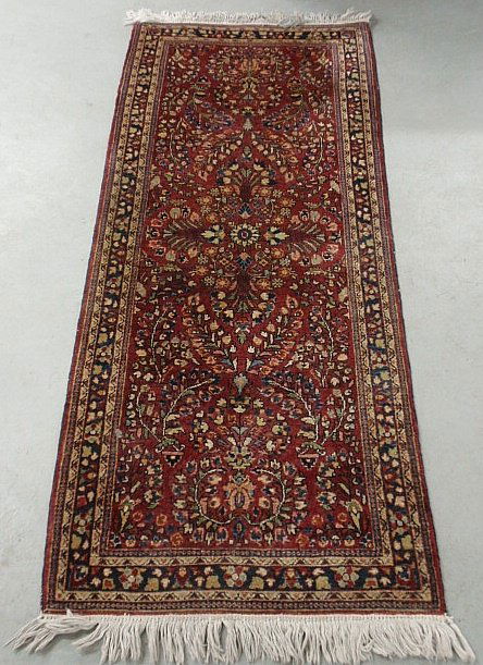 Sarouk oriental hall runner with a red field and