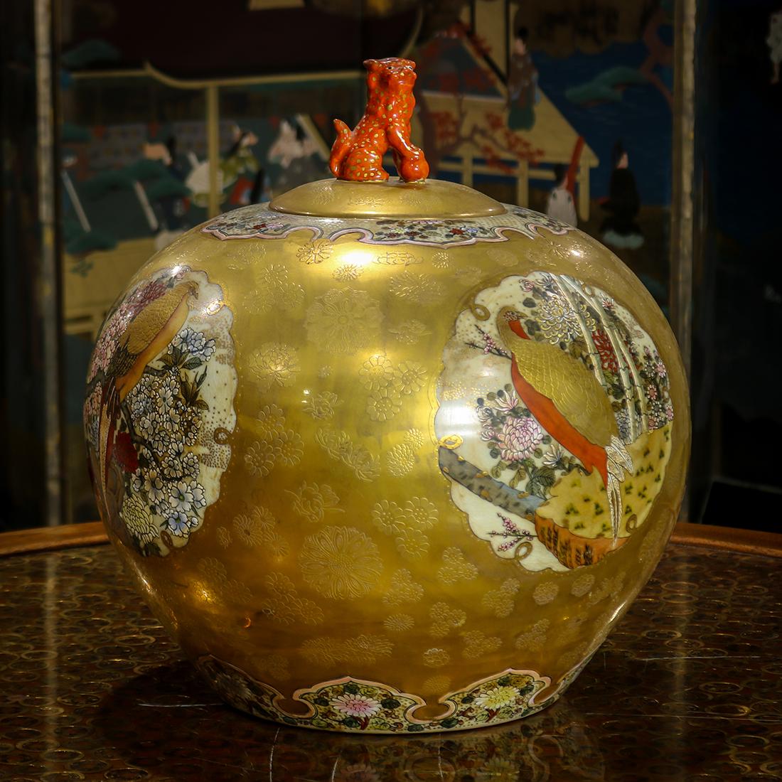 Large Japanese Satsuma Temple Jar with Lid, Meiji Period1 day LeftJapanese Satsuma Style Vase with Raised Immortals and Scenic DecorationFeb 19, 2026A carved dragon-patterned enamel jar with open windows and floral and bird designs on a gold ground.6 hrs LeftAn Exquisite Yellow Ground Famille-Rose Painted Gold Lotus and Figure Pattern Cover JarMar 07, 2026A Yuan dripping powder gold-painted lotus leaf mandarin duck jar6 hrs LeftA Rare Wucai Painted Gold Hornwort Pattern Cover JarMar 07, 2026A Qing Qianlong enamel carved gold background flower and bird vaseFeb 28, 2026A Qianlong year pile of golden dragons wearing flowers dragon ears holding the moon vase6 hrs LeftSatsuma Mantel VaseFeb 14, 2026RARE Antique Japanese Satsuma Koro Incense Burner Meiji Period Hand-Painted w/ Foo Dog FinialFeb 19, 2026Vintage Japanese satsuma ginger jar. Meiji period2 days LeftLarge Japanese Gold Color Kutani Porcelain VaseFeb 21, 2026An Exquisite Famille-Rose Lotus Pattern Dragon Pattern Seawater Pattern Gourd-Shaped VaseFeb 27, 2026An Exquisite Wucai Painted Gold Dragon Pattern JarMar 06, 2026A Rare Famille-Rose Eight Treasures Pattern Double-Ears VaseMar 11, 2026Plum vaseMar 06, 2026