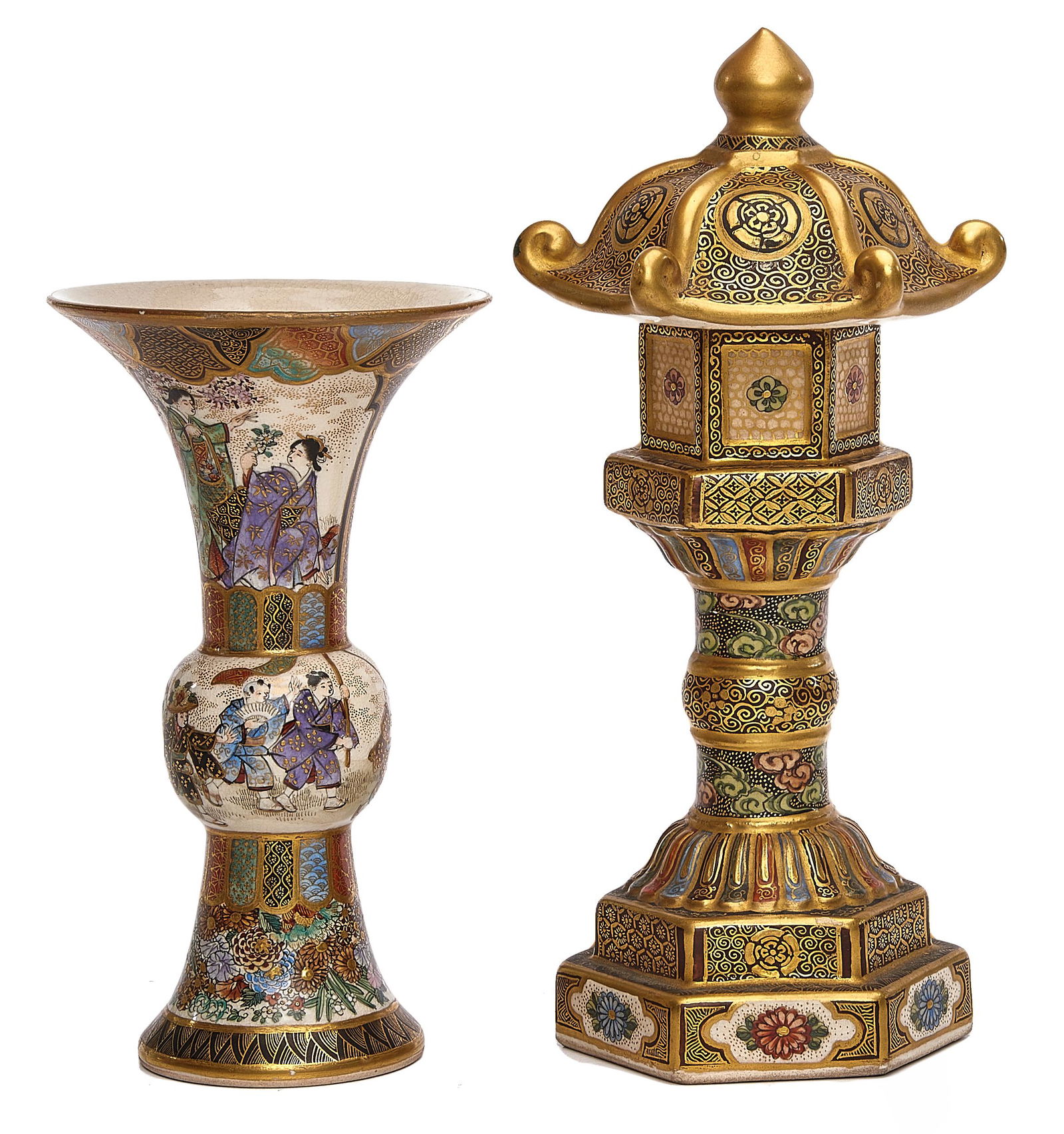 Satsuma vase and covered vessel