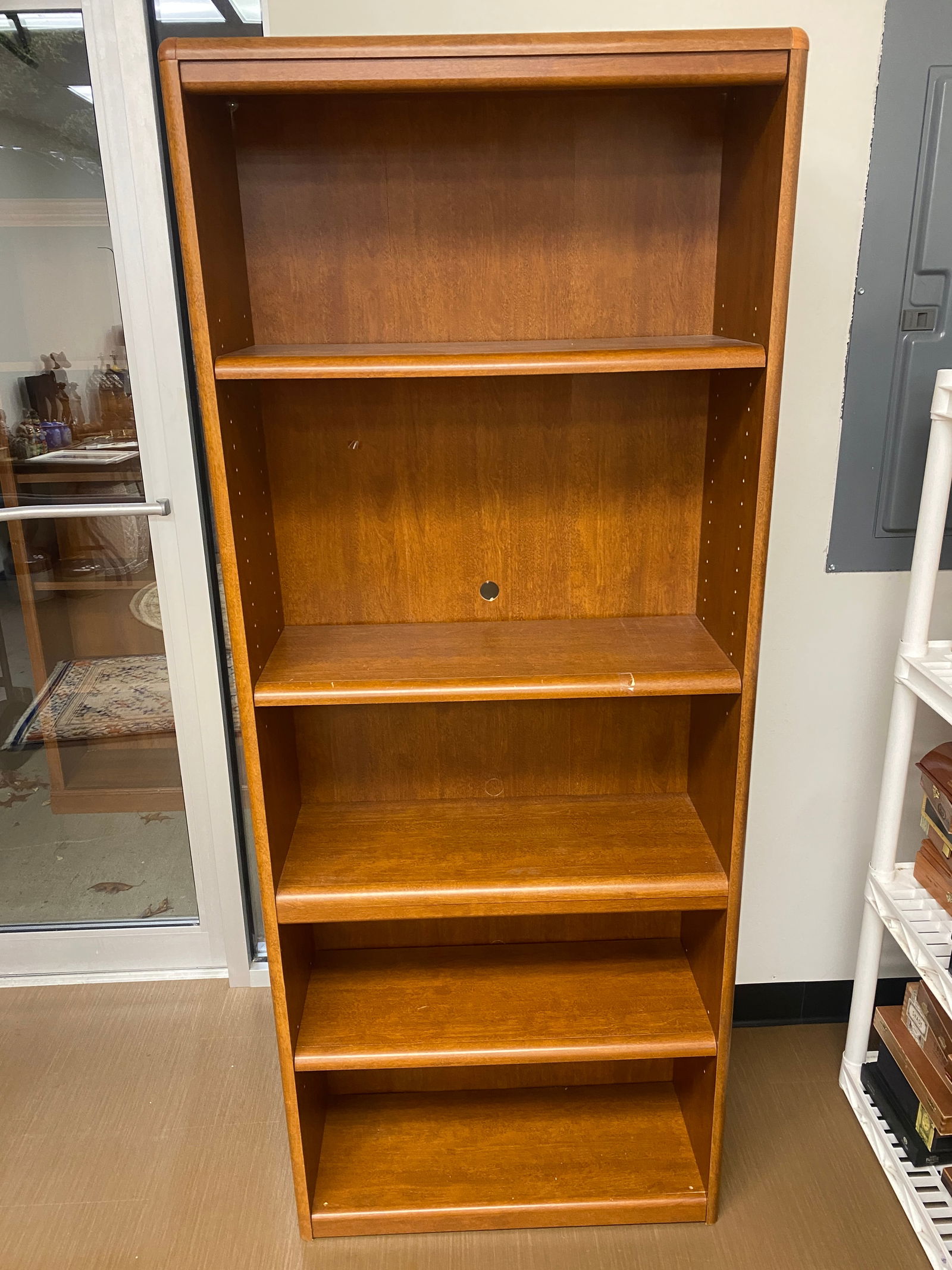 TRADITIONAL FIVE TIER OAK BOOKCASE WITH ADJUSTABLE SHELVES