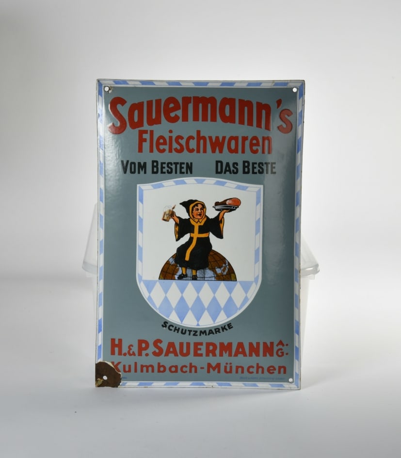 Sauermann's Fleischwaren, Emailschild