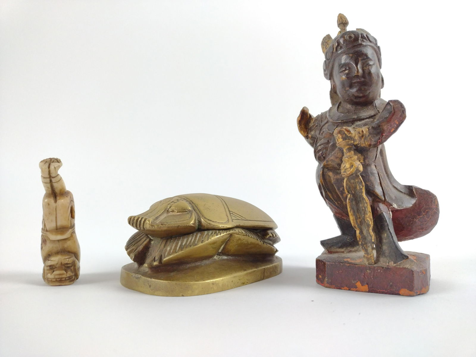 Scarab Box and 2 Carved Figures