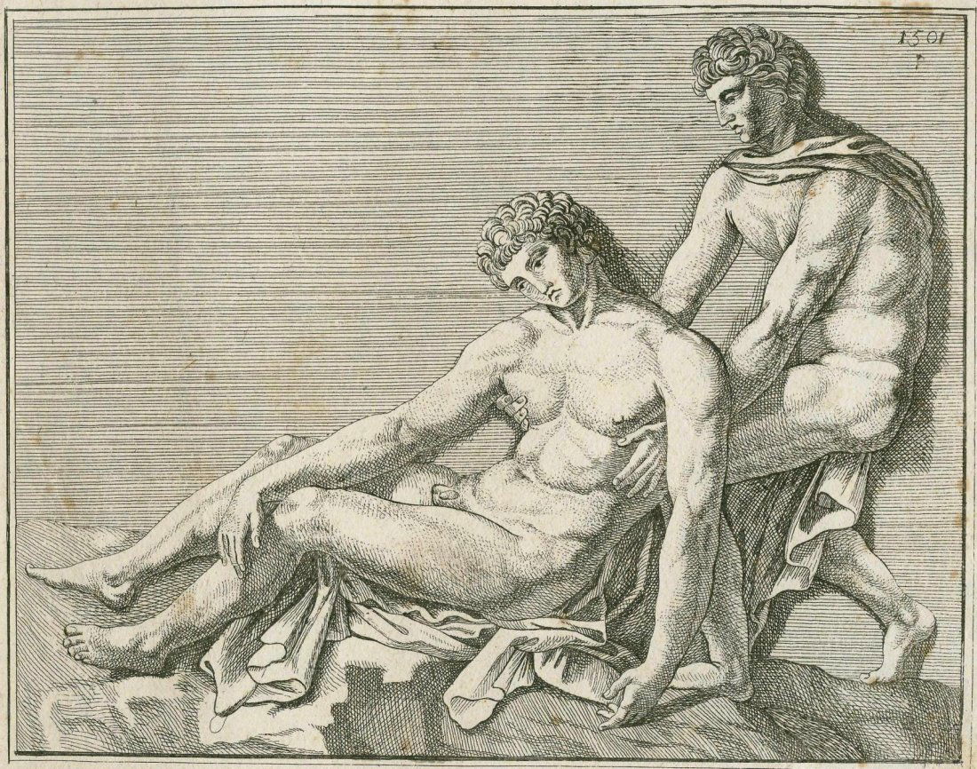 Scene with two men. Ancient Greece. ~17th-18th.