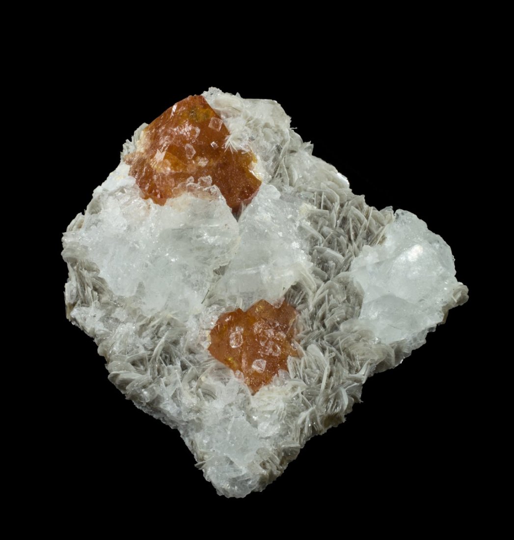 SoldNatural History - Muscovite and Quartz Crystal Group. A group of twelve mineral specimens of muscovite (white mica) and quartz crystals on albite, with a specimen of the zeolites stilbite and heulandite on matrix. Private collection, Cambridgeshire, UKSee Sold Price