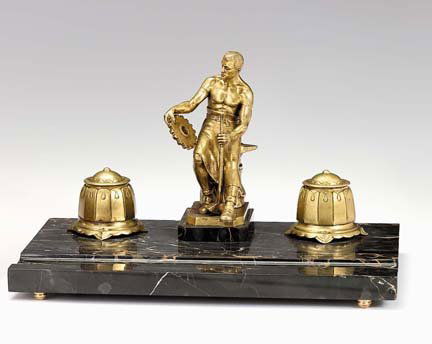 BRONZE INKWELLFeb 19, 2026Antique Bronze Figural Inkwell5 days LeftPASQUINO GROUP BRONZE AND MARBLE INKWELLMar 07, 2026Friedrich Gornik (Austrian 1877-1943) InkwellFeb 22, 2026Ferdinand Lugerth (Austrian 1885-1915) Bronze InkFeb 22, 2026Gilt Bronze and Marble Desk Set, 19th c., H.- 3 in., W.- 12 in., D.- 10 in.Feb 27, 2026Four Piece Inkwell GroupFeb 21, 2026A NEOCLASSICAL STYLE MANTLE CLOCK, FRENCH, MID 19TH CENTURY,Feb 21, 2026Bronze and Marble Antique Cherub Inkwell4 days LeftA FRENCH BRONZE EGYPTIAN REVIVAL INKWELL MANTEL CLOCK, 19TH CENTURY3 days LeftA Caldwell & Co. Renaissance Style Bronze Inkwell4 days LeftContinental Art Deco Bronze Black Portor Marble Desk SetMar 15, 2026A BRONZE-GILT CENSER WITH STANDMar 01, 2026Antique Brass Neoclassical Style Double InkwellFeb 25, 2026Vintage Inkwell with Glass Liner3 days LeftBRASS SIGNAL CANNON DESK STANDISH 20th Century Height 5.5". Width 17.5". Depth 11.25".Feb 26, 2026
