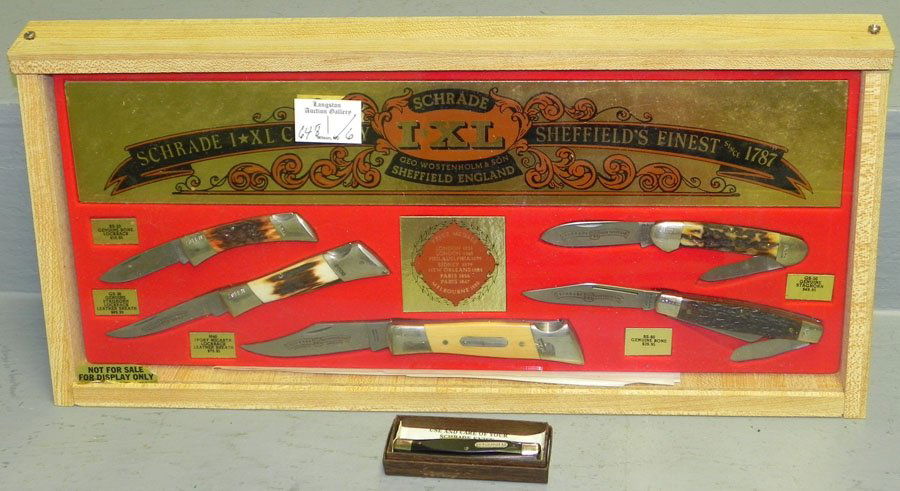 Schrade disp. case w/ 5 knives & Old Timer knife