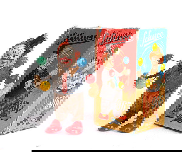 VINTAGE TOY LOTMar 07, 2026ASSORTED VINTAGE GERMAN TIN LITHOGRAPH MECHANICAL TOYS, LOT OF TWOMar 05, 2026ASSORTED JAPANESE VINTAGE MECHANICAL TOYS WITH BOXES, LOT OF TWOMar 05, 2026ASSORTED CHILD'S STORY-BOOK CHARACTER PAIRS OF CLOTH, COMPOSITION AND RUBBER DOLLS, LOT OF SEVENMar 05, 2026DISCOVERY LOT VINTAGE COLLECTION CARNIVAL GAMES AND MULTICULTURAL DOLLS3 hrs LeftBOXED SCHUCO JUGGLING CLOWN6 days LeftBOXED O-LOOK THE JUGGLER CLOWN6 days LeftLINEMAR WINDUP JUGGLING POPEYE & OLIVE OYL w/ BOXMar 14, 2026Antique Schoenhut Elephant Early Clown Barrel Chair and LadderFeb 28, 2026LINEMAR WINDUP MECHANICAL MEAN MAN "NODDER" w/BOXMar 14, 2026Schuco, Solisto Clown mit Geige7 days LeftSchuco, Clown mit Trommel & Clown mit Geige7 days Left(2pc) Litho Party Horn Noisemaker & Tin ToyMar 10, 2026GUNTHERMANN HAND PAINTED WINDUP CLOWN MUSICIANSMar 14, 2026CELLULOID JACKIE COOGAN & MONKEY PLAYING GUITAR6 days LeftLINDSTROM SWEEPING KATINKA & MAMMY6 days Left