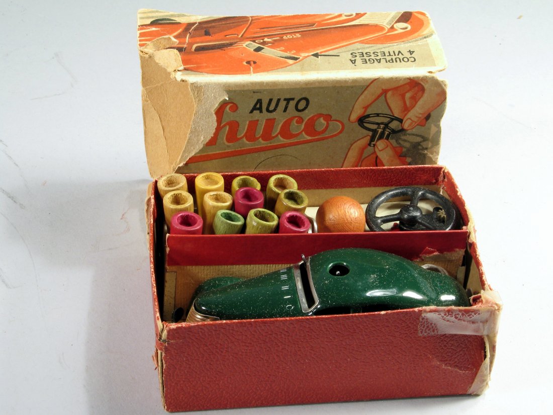 SoldSCHUCO 3041 VARIANTO LIMOhandpainted tin, windup working, made in Spain under license, w/steering wire & wood pegs like a 3000 auto set, w/instructions, orig box & insert, C7.See Sold Price