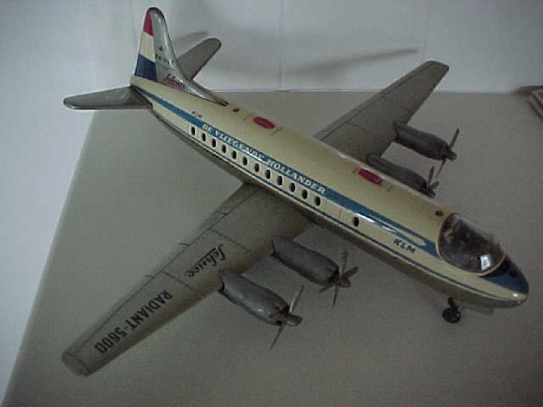 SoldSchuco Elektro Radiant-5600 KLM AirplaneWest German. 1950s. Lithographed tinplate. KLM The Flying Dutchman plane includes a remote cord and varianto steering. "Elektro Radiant" was the name given to one of the popular Schuco toy lines. SchuSee Sold Price