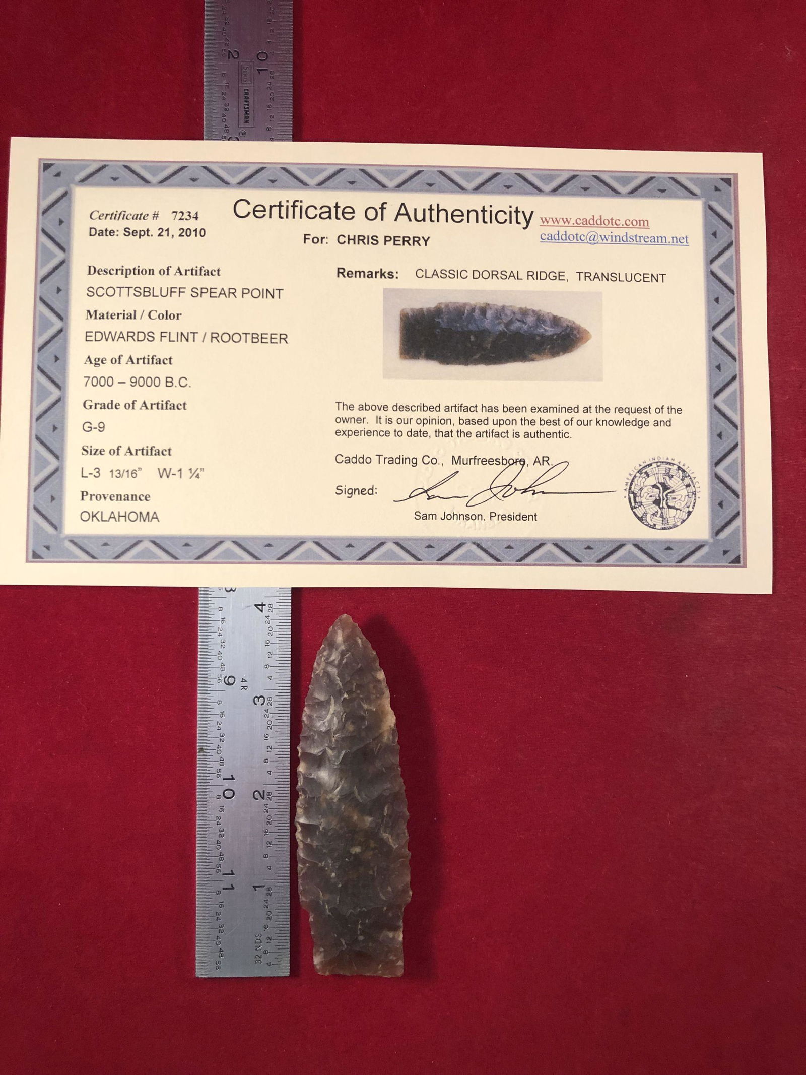 SCOTTSBLUFF INDIAN ARTIFACT ARROWHEAD WITH COA