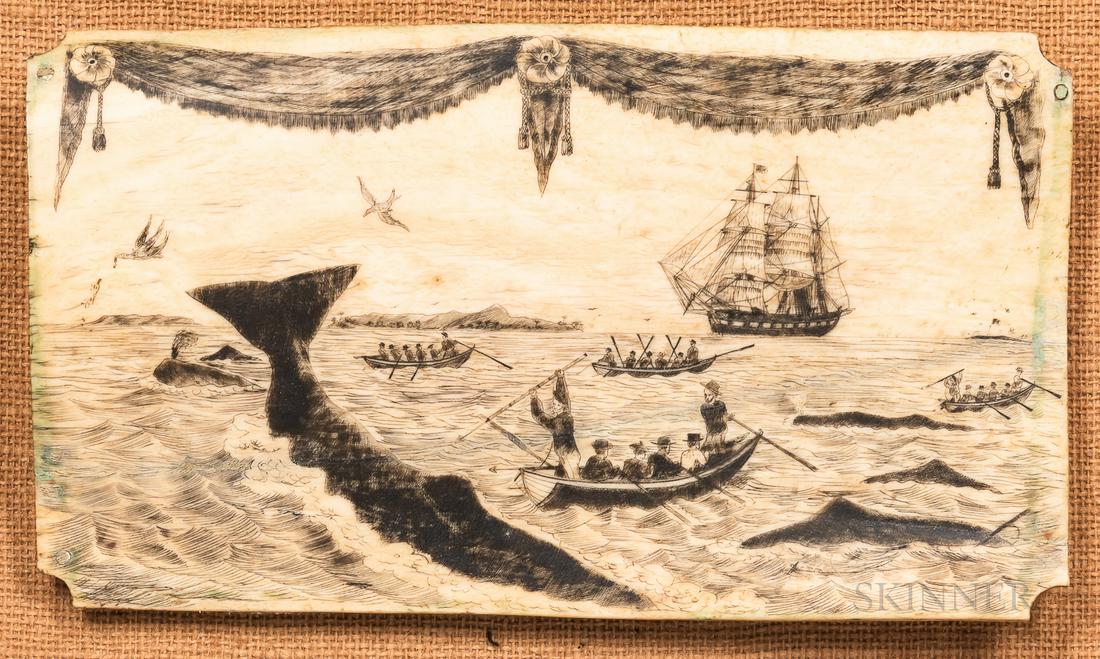 SCRIMSHAW WHALE'S TOOTH WITH WHALING SCENE AND U.S. NAVAL VESSELS Mid-19th Century Length 6.75".Eldred's4.8(484)$5,0005 days Left