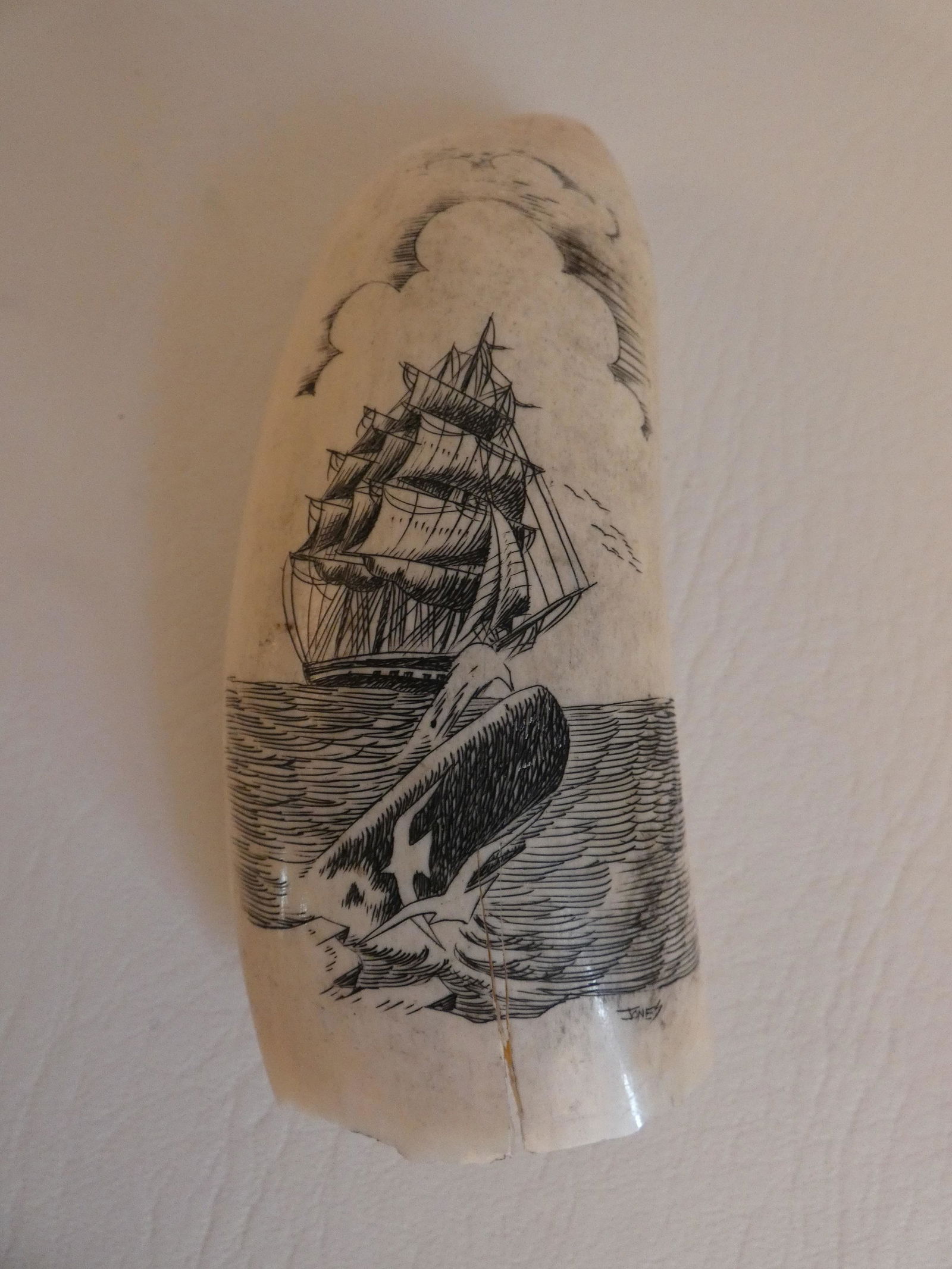 SCRIMSHAW WHALE TOOTH - JONES