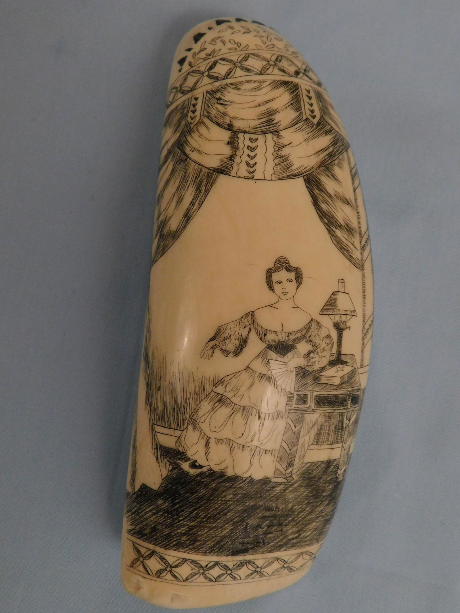 POLYCHROME SCRIMSHAW WHALE'S TOOTH WITH PORTRAIT OF A LADY Mid-19th Century Length 7".Eldred's4.8(484)$2,0007 days Left