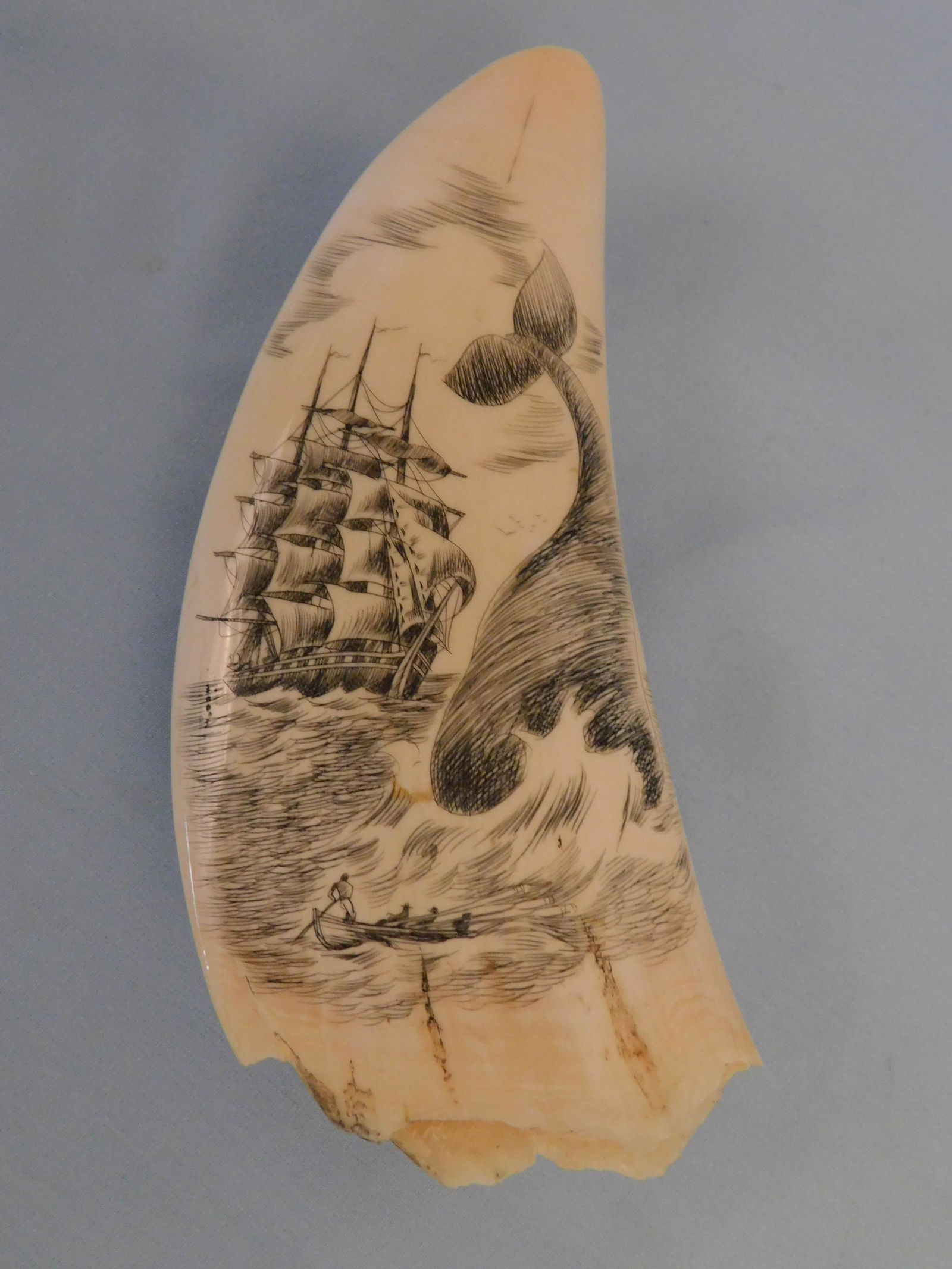 SCRIMSHAW WHALE TOOTH - WHALE ATTACK