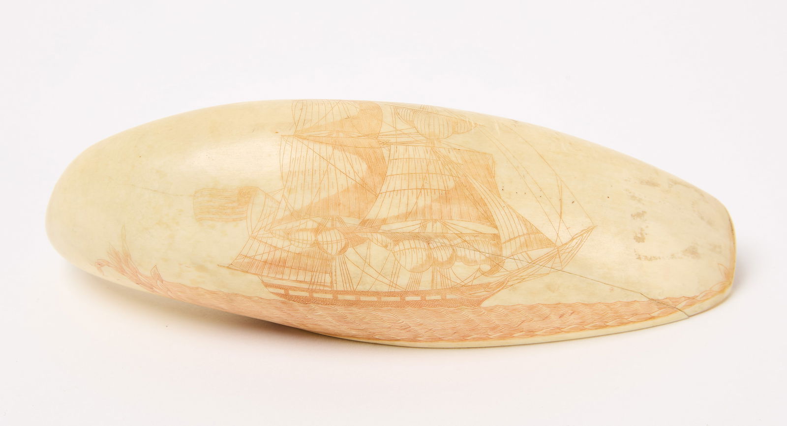 SoldSCRIMSHAW: Busk sailor art, 19th C., carved baleen love token, oblong with tapered sides, carvedSCRIMSHAW: Busk sailor art, 19th C., carved baleen love token, oblong with tapered sides, carved motifs include buildings, potted trees, lighthouse, and geometric designs, some loss to edges, scratcheSee Sold Price