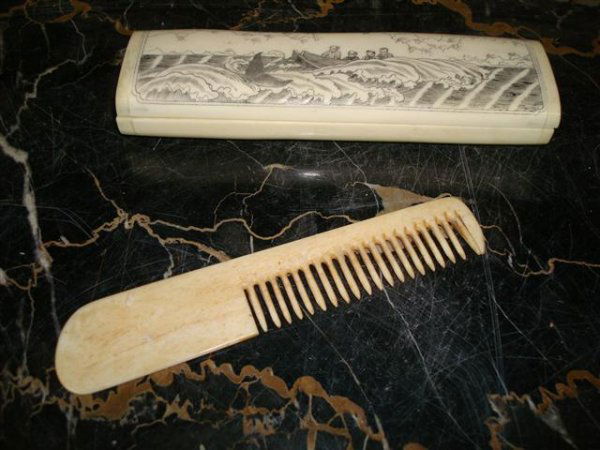 SCRIMSHAWED BOX WITH COMB