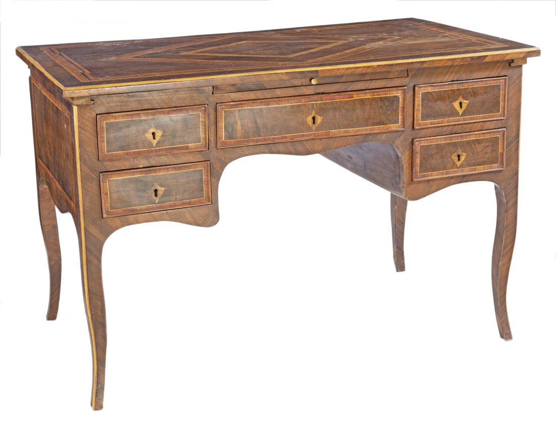 Antique Burl walnut veneer Kneehole Desk w/ 2 Drawers & Turned Legs. Very Good Condition. See pics.Crawford Family Auctions LLC4.6(199)$20(1 bid)