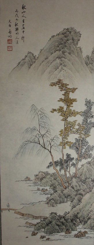 SCROLL-UNMOUNTED, SIGNED QI GONG
