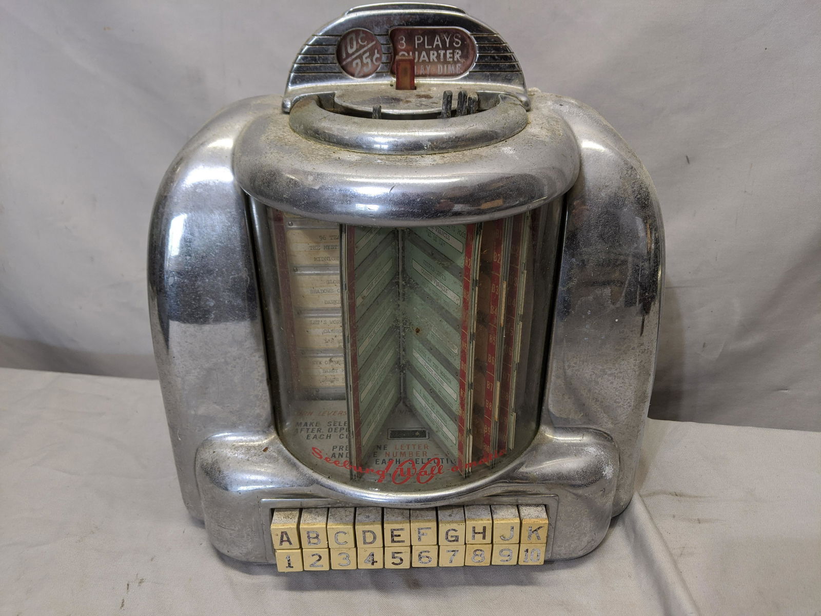 Darche MFG Co, Flash Light Alarm Bank Clock4 days LeftWurlitzer Model 2710 Stereo Jukebox, c. 1963Mar 08, 2026Folk Art - Timm Rye "Seaburg Wall-O-Matic 100 Series" Jukebox - Signed6 days LeftC.J. Sheils Personal Stereophonic Music Wallbox WurlitzerMar 21, 2026Mid 1950s Seeburg 160 Wall-O-Matic Remote Jukebox Song SelectorMar 22, 2026Vintage Seeburg Wall-O-Matic Jukebox WallboxMar 07, 20261950s Seeburg 200 Wall-O-Matic Remote Jukebox Song SelectorMar 22, 2026Packard Butler remote jukebox selector wall boxMar 28, 2026Jennings The Governor 5 Cent Slot MachineMar 03, 2026Vintage Jennings Rock-Ola 5 Cent Slot Machine6 days LeftMill's Novelty Co. High Top Slot MachineMar 01, 2026Little Duke 5-cent slot machineMar 28, 2026Casco Bay Lines 25-cent trolley fare standMar 27, 2026Bankers Dust Proof Time Lock Co Bank Vault Time LockMar 01, 2026Radio- Scott Allwave 23 in Warrington Cabinet Good Chrome Shortwave Works, AM is Weak7 days LeftReuge Coin-Op Automation Music Box with Dancing Girl, Sainte-Croix, SwitzerlandMar 14, 2026