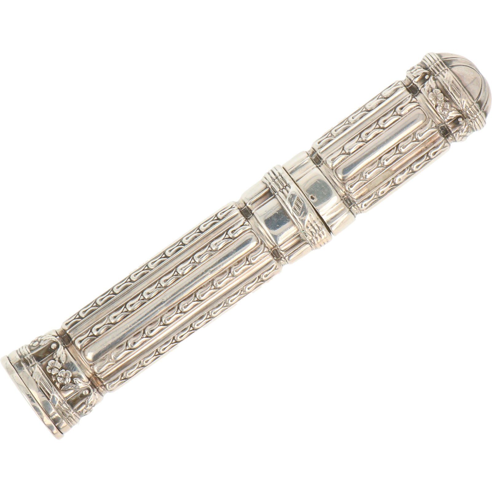 Sterling Silver Cigar Tube5 days Left18th Century Dutch Silver Sugar Caster Amsterdam Circa 1760Judaica Silver MezuzahMar 26, 2026Handmade 925 Sterling Silver Leaf Applique Megillah Holder 16.25 InchesMar 02, 2026English sterling silver tall muffineer. Repousse floral decorated body. Armorial crest withMar 01, 2026Antique Gold Plated Pocket Watch Key & Carved Gemstone FlowerMar 13, 2026DECORATIVE COLLECTIBLE JEWISH OR JUDAICA MEZUZAH5 days LeftAntique French 18k Sewing Needle Case13 hrs LeftHandmade 925 Sterling Silver Leaf Applique Megillah Holder 21 Inches6 days LeftHandmade 925 Sterling Silver Mezuzah with Leaf Applique CrownMar 03, 2026Candlestick. 800 silver.6 days Left19TH C AMERICAN GORHAM SILVER SCENT BOTTLE, 54g3 days Left1843 Victorian Sterling Silver Muffineer by Lias Brothers2 days LeftA GEORGE II SILVER SUGAR CASTERMar 03, 2026950 Silver Engraved Snuff Box, c. 1820, B&M Maker's Mark with Clover DeviceMar 08, 2026Edwardian Silver & Enamel Stamp Moistener5 days Left