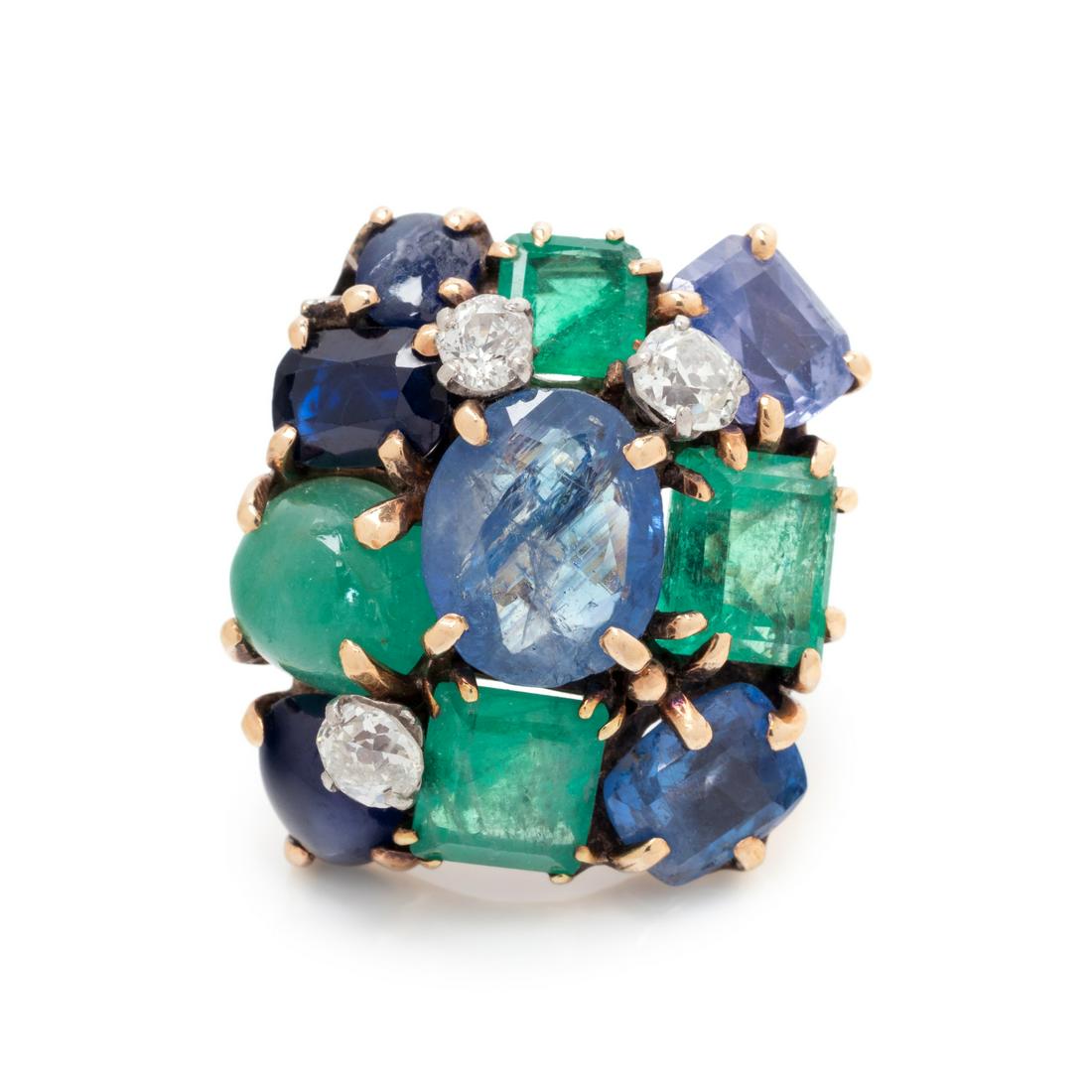 SEAMAN SCHEPPS, SAPPHIRE, EMERALD AND DIAMOND RING