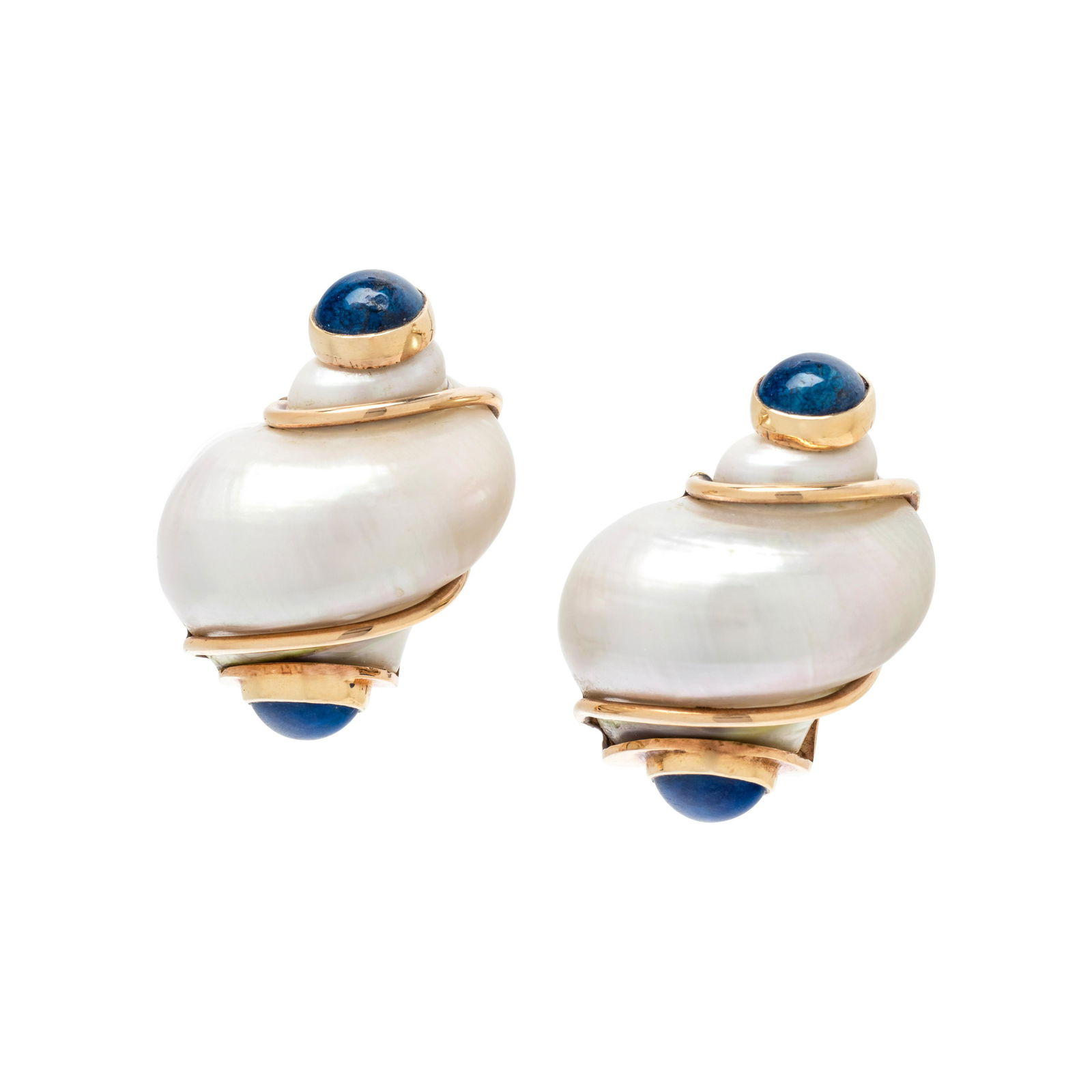 SEAMAN SCHEPPS, SHELL AND HARDSTONE EARCLIPS