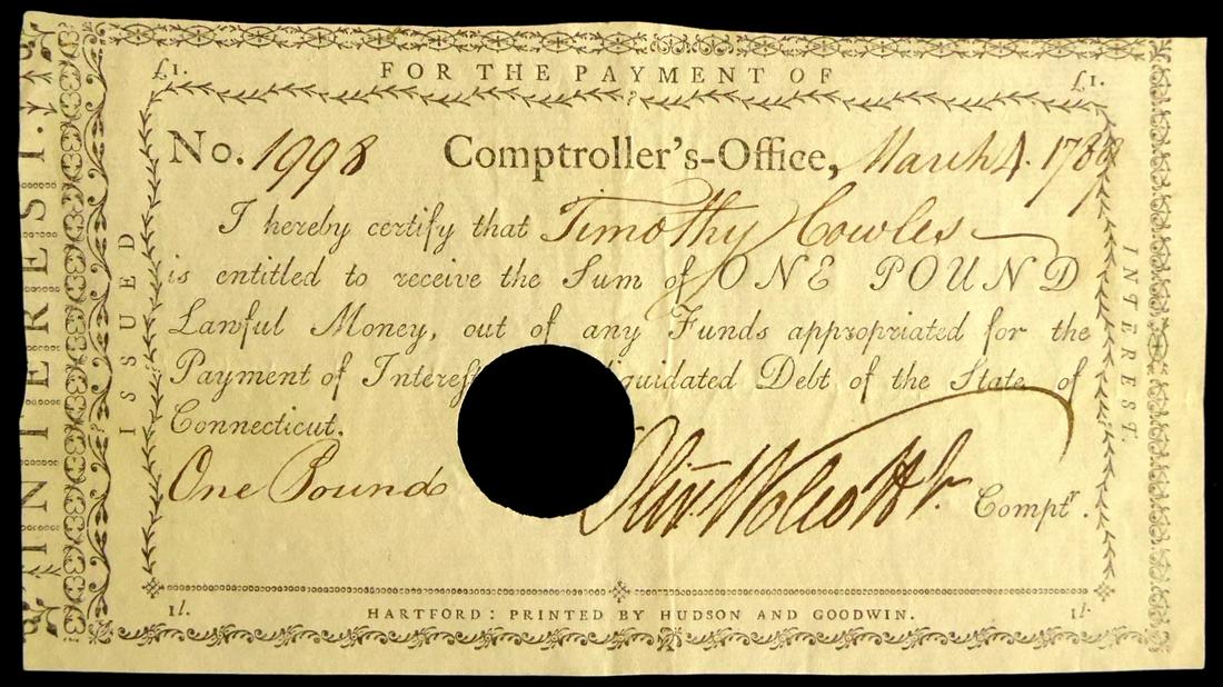 1796 English Manuscript Warrant of Attorney London1799 Manuscript New York Bail NoticeNORFOLK, VIRGINIA - BANK OF THE UNITED STATES $20 OBSOLETE CURRENCY / NOTE5 days LeftRARE NEW HAMPSHIRE DEPRECIATION COLONIAL CURRENCY / NOTE5 days Left1780 Revolutionary War Army DocumentMar 15, 20261791 Boston, Massachusetts Official Senate Vote ReturnMar 15, 20261725 Colonial Connecticut Sheriff’s Execution Writ, New London County CourtMar 15, 2026James Monroe – U.S. Land Grant – Land Issued as President to War of 1812 SoliderUNITED STATES WAR OF 1812 SOLDIER'S SERVICE LAND WARRANT5 days Left1763 Colonial Connecticut Constable Expense Account to Transport Female Prisoner to NYMar 15, 2026Oliver Wolcott, American Patriot 1791 DocumentMar 15, 20261835 Estate Inventory Document Including Enslaved Woman Listed as PropertyMar 15, 20261776 New York $5 Colonial Note Revolutionary War IssueMar 15, 20261774 New York Bond for 1,600 PoundsMar 15, 2026Union Army Commutation Money Receipt Aug 22 1864 MS64 PCGS Certified3 days Left1805 Luzerne County Pennsylvania Writ of ExecutionMar 15, 2026