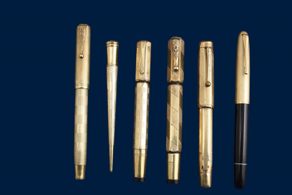 Sheaffer Balance, Wasp & Solid 14K Gold Crest Fountain Pen Lot (6)Feb 28, 2026LARGE LOT OF PRIMARILY VINTAGE WINCHESTER/OLINFeb 28, 2026LOT OF 4: SENATORS AND LOBSTER MOTHER-OF-PEARL POCKET KNIVES.Feb 25, 2026Gold Bond Marbleized Fountain Pen Lot (4)Feb 28, 2026Gold Bond Stonite Flattop Fountain Pen Lot (5)Feb 28, 2026Waterman Hundred Year & Emblem Fountain Pen & Pencil Lot (4)Feb 28, 2026Fountain Pens, Various MakersFeb 25, 2026Pens, Various MakersFeb 25, 2026Fountain Pens, Various MakersFeb 25, 2026GROUP OF FOUR VINTAGE FOUNTAIN PENS AND PENCILSMar 01, 2026Vintage Fountain Pens & Mechanical Pencils (19)7 days LeftRing Top Fountain Pens, FranceFeb 25, 202622 Karat Electro Gold Plate, Golden Tableware by Stanley Roberts – 50 Piece Service for 8Feb 27, 2026Fountain Pens, JapanFeb 25, 2026SILVER & GOLD FILLED PENSFeb 25, 2026A GROUP OF TWELVE GOLD PENS AND PENCILS MOST AMERICAN, VARIOUS MAKERS, 20TH CENTURY2 days Left