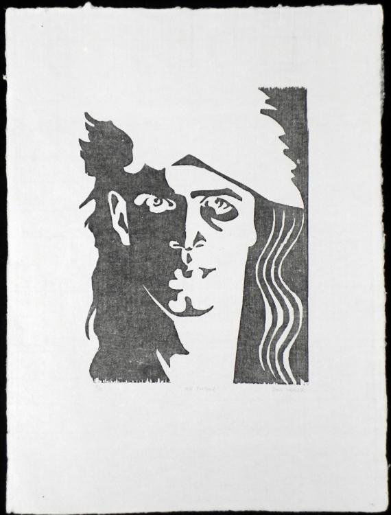 Self-Portrait Block Print Original S/N Don Weaver