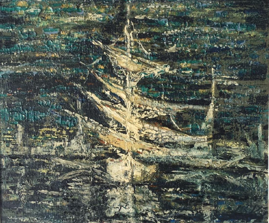 Mystery Art Deco Oil Painting 46x36in California NY Estate Semi Abstract Pre War Landscape ModernistDescribed By:Michelle NED HFA VX Title:Mystery Art Deco Oil Painting 46x36in California NY Estate Semi Abstract Pre War Landscape Modernist Futurist Avant Garde Description: About 8 years ago we purch