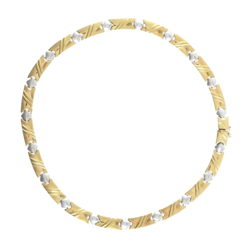 14k Yellow Gold Choker Necklace With Z Shaped Textured Links