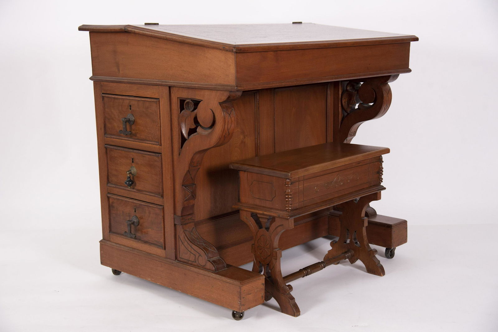 Victorian Style Davenport DeskFeb 28, 2026Georgian Style Mahogany Pedestal DeskFeb 26, 2026Plantation DeskMar 05, 2026Colonial style slant front writing desk w/one drawer, turned legs. Interior has one drawer & 45 days LeftSouthern Cherry One-Drawer Work Table with Spiral Turned Legs, ca.1840-60Mar 07, 2026American Primitive Schoolmaster’s Lift-Top Desk, PennsylvaniaMar 07, 2026SPINDLE GALLERY WOOD WRITING DESK WITH TURNED LEGS2 days LeftAntique Dark Wood Writing Desk with Turned LegsFeb 28, 2026French Faux Bamboo Desk / Writing Table4 days LeftANTIQUE SALESMAN'S SAMPLE SLANT FRONT HARDWOOD SECRETARIES DESK2 days LeftFrench Chestnut Single Drawer Writing Table4 days LeftAn antique childs school desk2 days LeftCHILD'S ROLL TOP OAK DESK4 hrs LeftAn English William and Mary style single drawer table circa 18001 day LeftAntique rosewood inlaid writing deskMar 03, 2026Mission Oak two drawer desk6 days Left