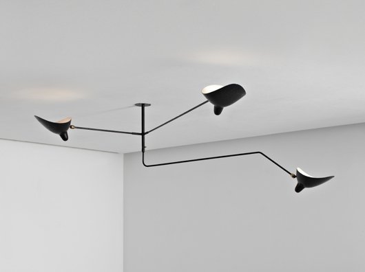 SERGE MOUILLE, Unique three-arm ceiling lamp, c. 19