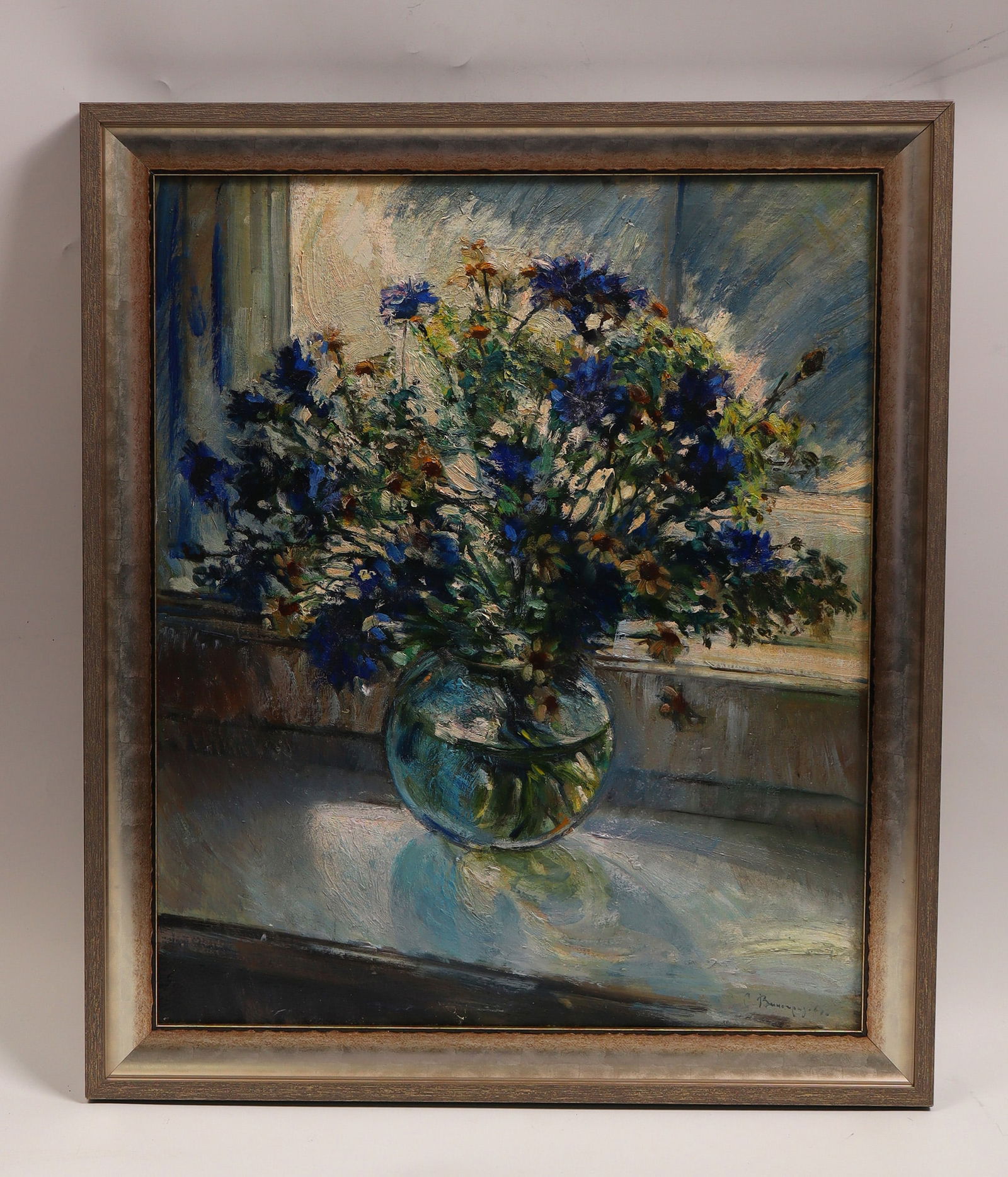 Oil painting with frame flowers K. Leonid