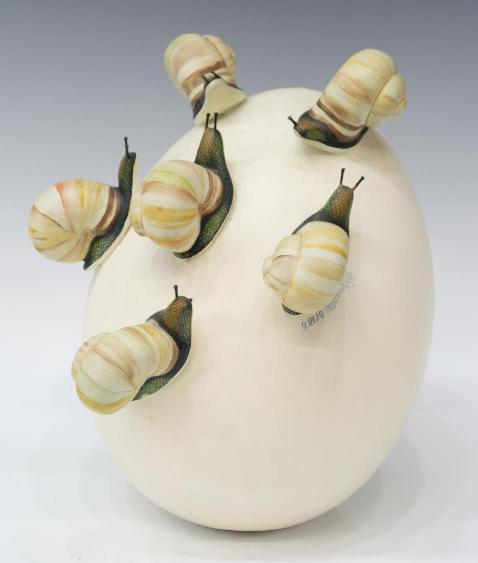 SERGIO BUSTAMANTE CERAMIC EGG SCULPTURE, SNAILS