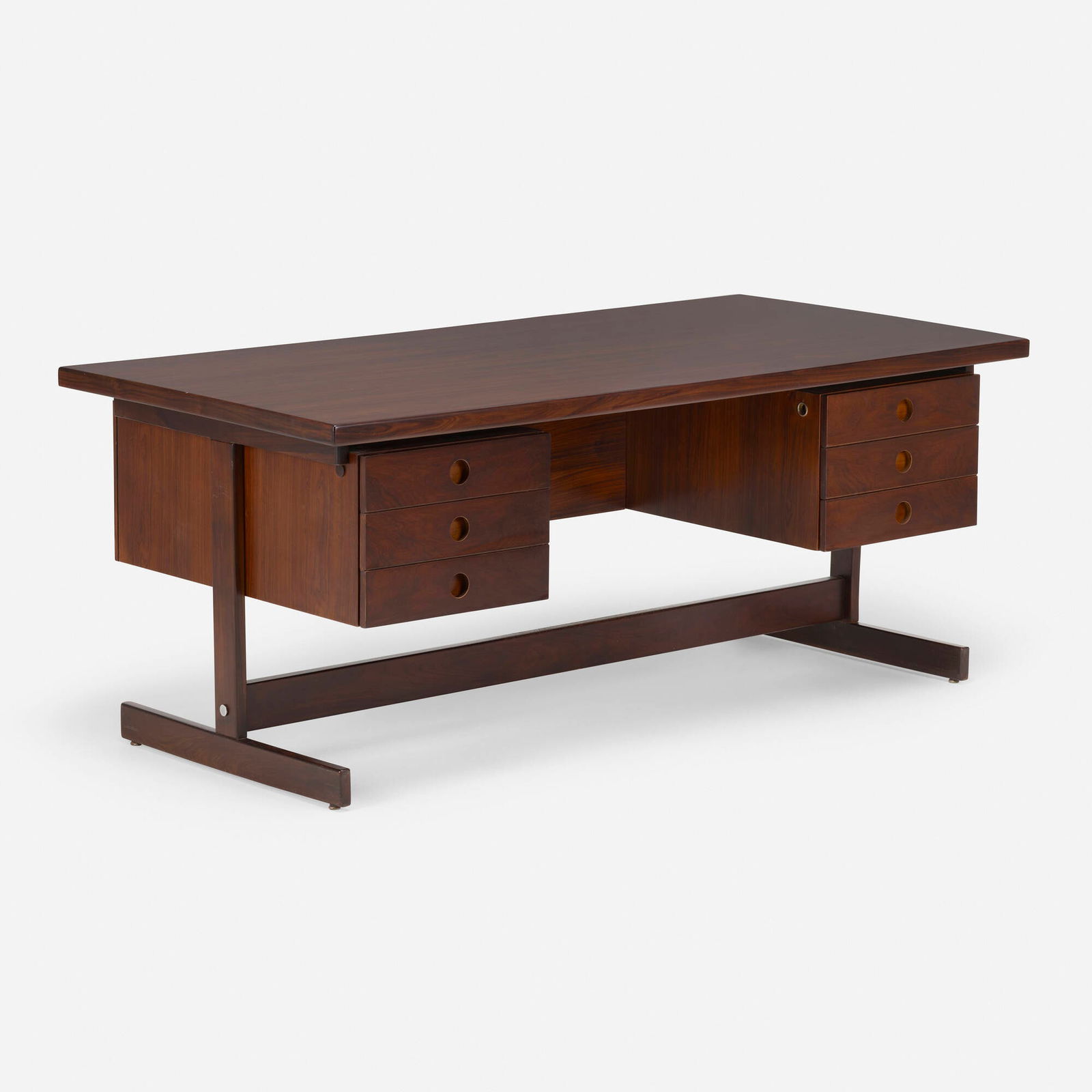 SoldSergio Rodrigues, Clara office deskSergio Rodrigues Clara office desk OcaBrazil, 1965jacaranda 29.25 h x 78.25 w x 35.25 d in (74 x 199 x 90 cm) Desk features six drawers. Provenance: Mercado ModerSee Sold Price