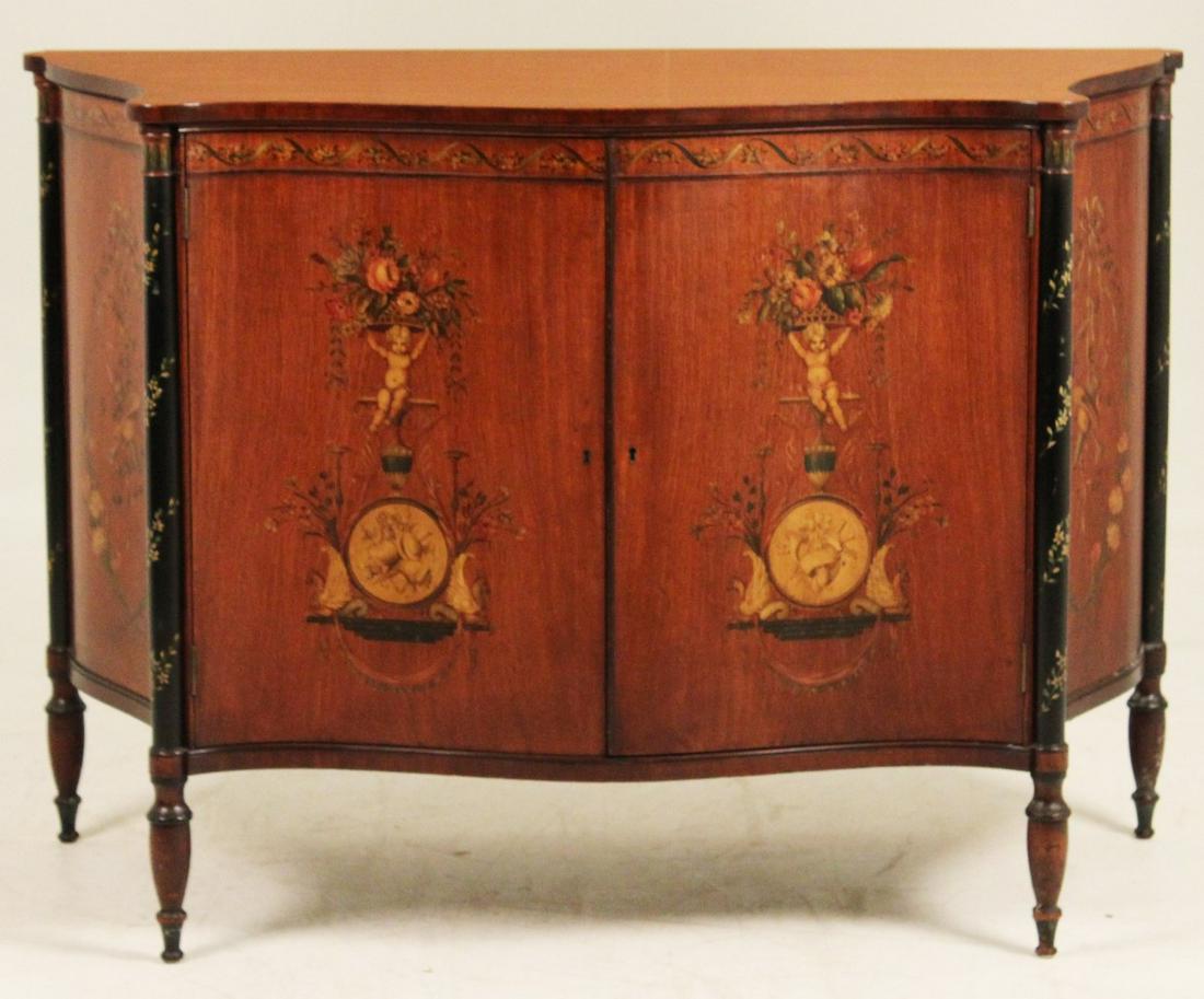 SERPENTINE MAHOGANY SHERATON STYLE COMMODE