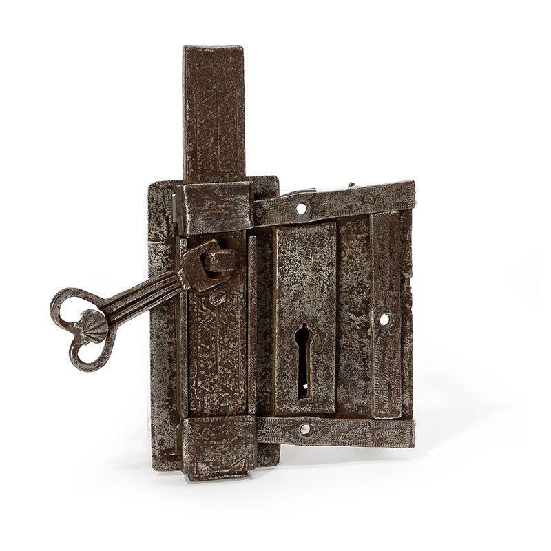 SoldRaro cassone in noceRaro cassone in noce, fronte e fianchi scolpiti a motivo di pergamena, con serratura e chiavistello in ferro battuto coevo. Epoca XVI secolo cm 82x147x55See Sold Price