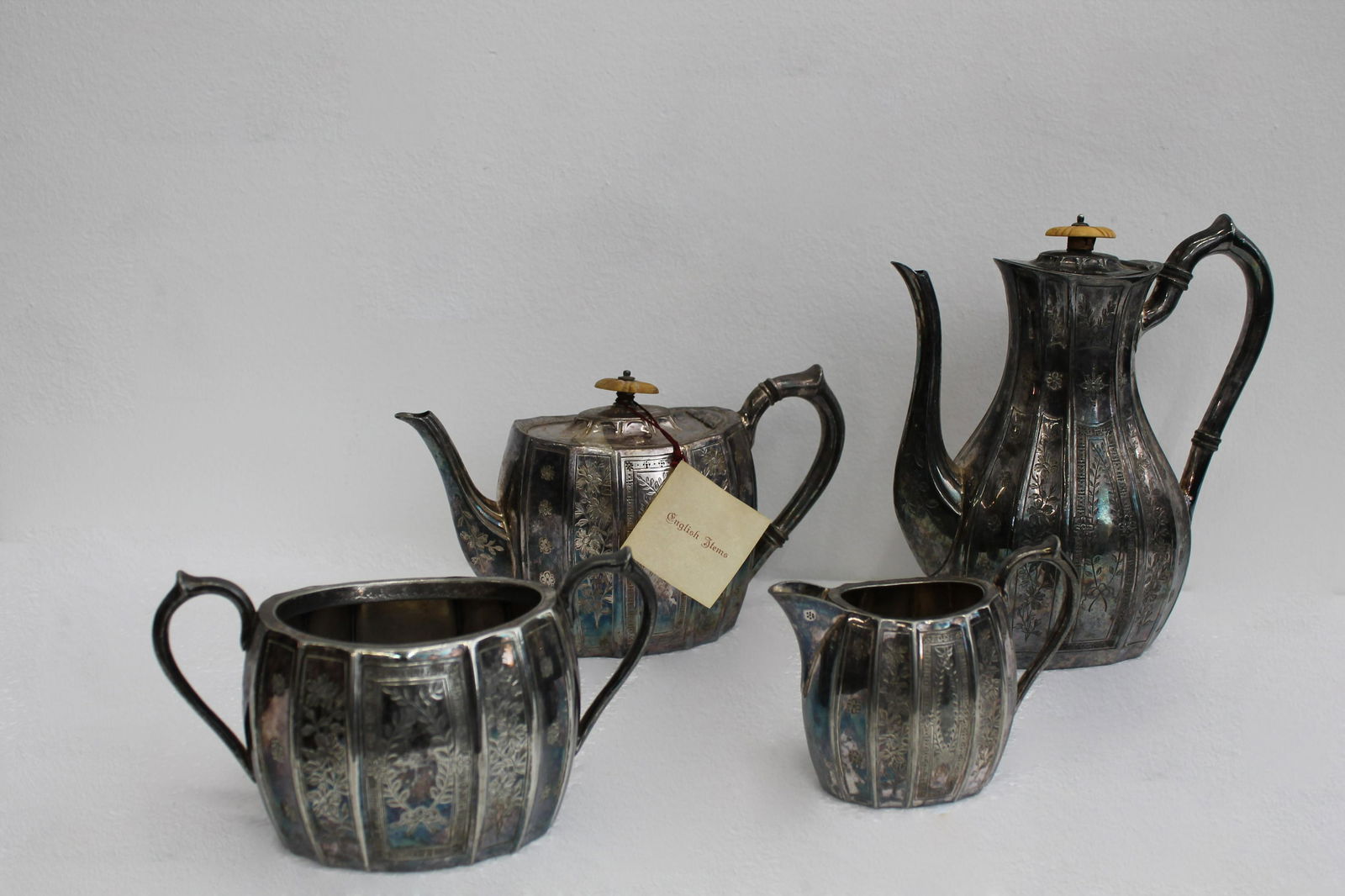 Lot of Assorted Silver Plate, etc. Including Creamer and Sugar, Cups, Pitcher, etc6 days LeftGiacomo Passera for Porcelaine de Paris - "Les voyages de Bougainville". A four-person coffeeTuscan, England, coffee service in pink porcelain with gold decoration consisting of coffee pot,Four-piece silver coffee and tea set with spiral fluting, silver 800, hallmarks, weight 882 gramsFeb 15, 2026Complete four-piece silver service by Wolfers Frères (Brussels), consisting of a teapot, coffeeFeb 15, 2026FIVE PC ENGLISH SILVER TEA & COFFEE SERVICE66 Lots AwayGeorge V Britannia Silver Tea Service Set, 4 Pcs.2 days LeftAntique Esquire Sterling Silver Coffee/Tea 4 Piece ServiceJul 17, 2025Pewter Holloware, Boardman, Badger5 days LeftRUSSIAN SILVER IMPERIAL PRESENTATION 5 PIECES TEA SET4 days LeftA GEORGE V SILVER THREE-PIECE COFFEE SERVICE MARK OF HORACE WOODWARD & CO, BIRMINGHAM, 1921Feb 19, 2026DGH Goldsmith Handwrought Sterling Silver Tea Set 4pc Grape Motif5 days LeftCoffee, Teapots, Etc. - Pewter, Gorham, Queen Art, InternationalFeb 12, 2026RARE AMERICAN SILVER COFFEE SERVICE, GORHAM4 days Left(8 PCS) ENGLISH STERLING SILVER BEVERAGE SERVICEFeb 22, 20264pc Community Achievement Art Deco Silverplate Coffee Tea Set5 days Left