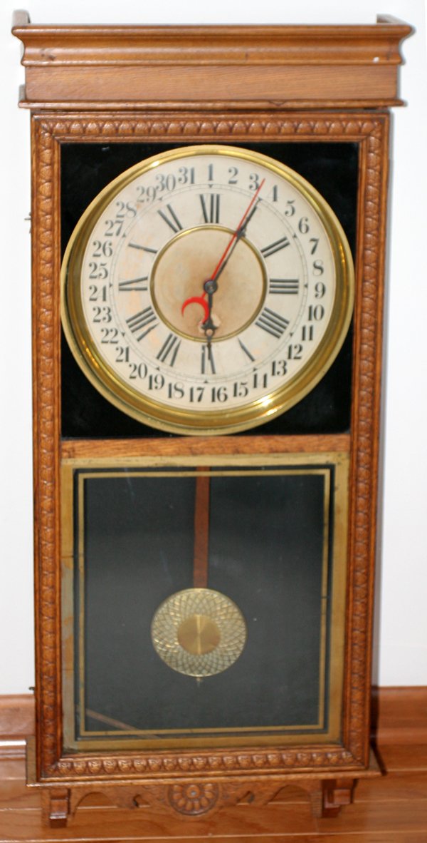 SESSIONS CLOCK CO. CARVED OAK REGULATOR CLOCK