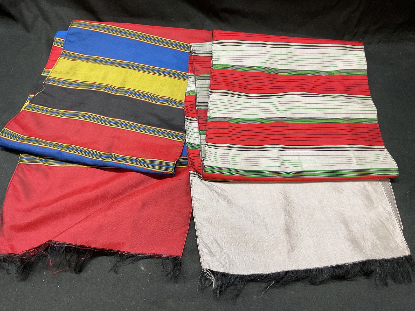 Set 2 Silk Striped Red Grey Scarves
