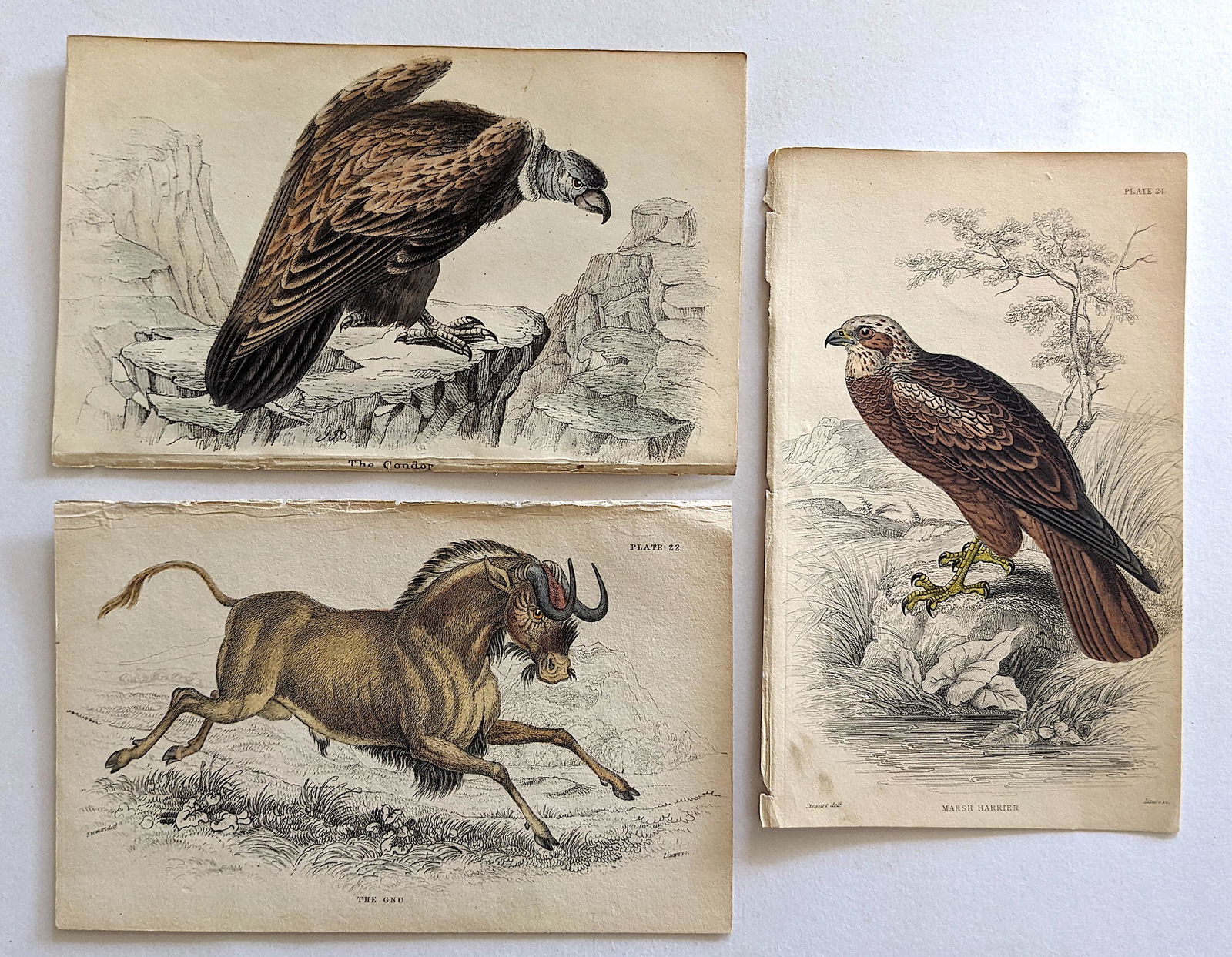 Set 3 Antique Colored Prints LIZARS, 1830s