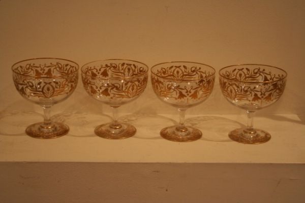 SET 4-BACCARAT-TYPE DESSERT FOOTED GOBLETS W/GILT