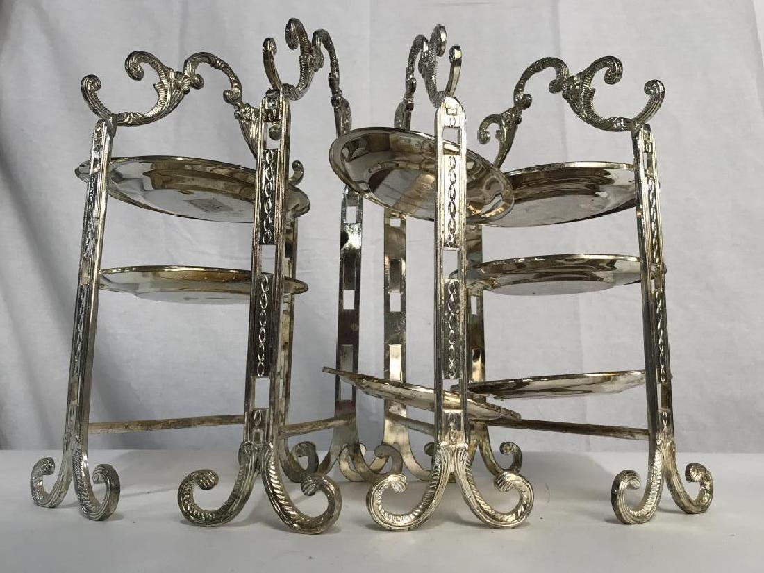 Set 4 Silver Plated Tiered High Tea Serving Trays