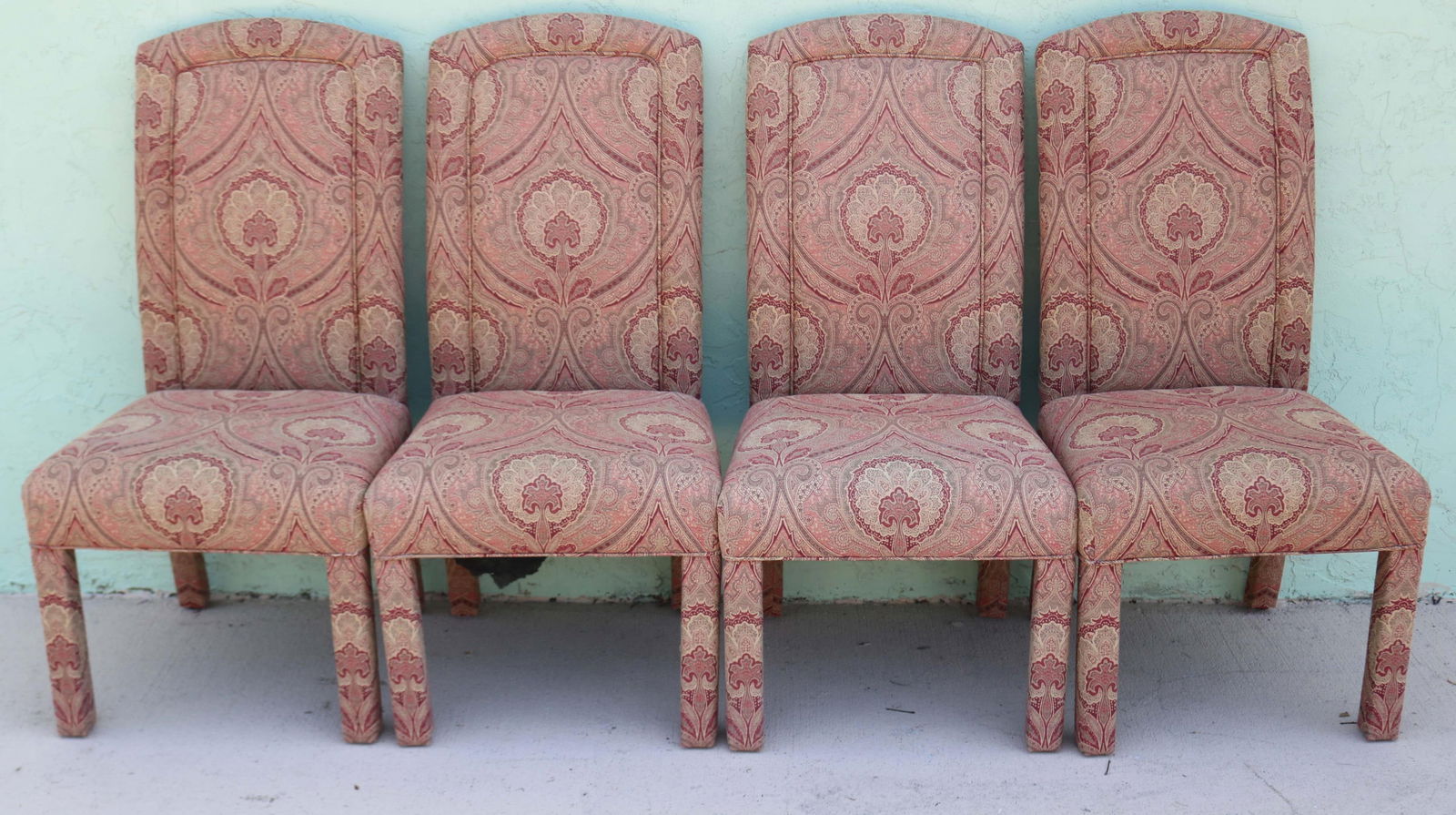 EIGHT ITALIAN DINING CHAIRS UPHOLSTERED IN FOUR DIFFERENT COLORS C 1950.Kamelot Auctions4.4(346)$8003 days Left