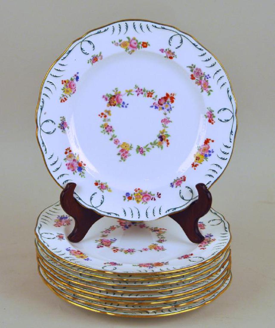 Set Eight Minton Porcelain Dinner Plates, Plus One