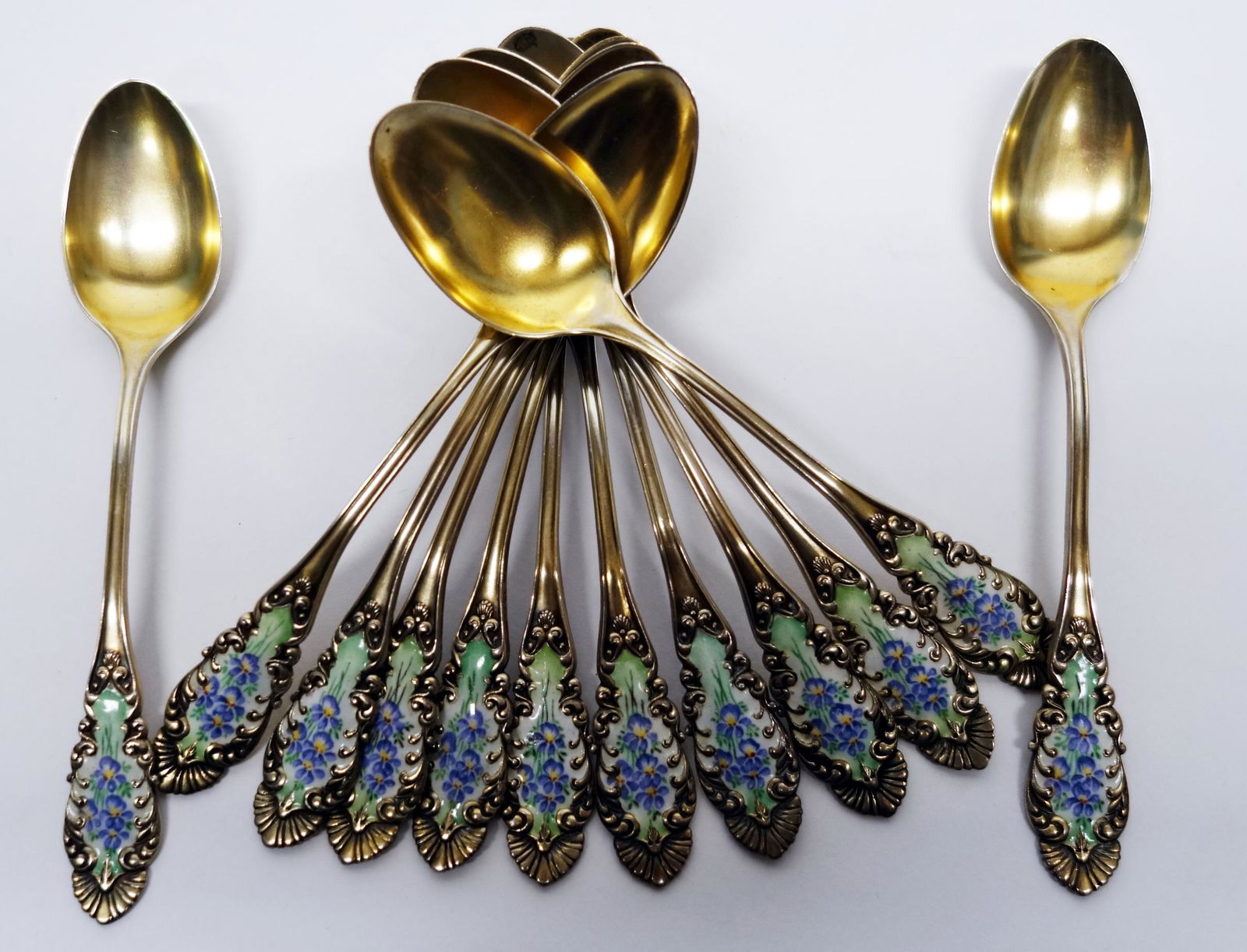 SET ENAMELED STERLING TEASPOONS (12)
