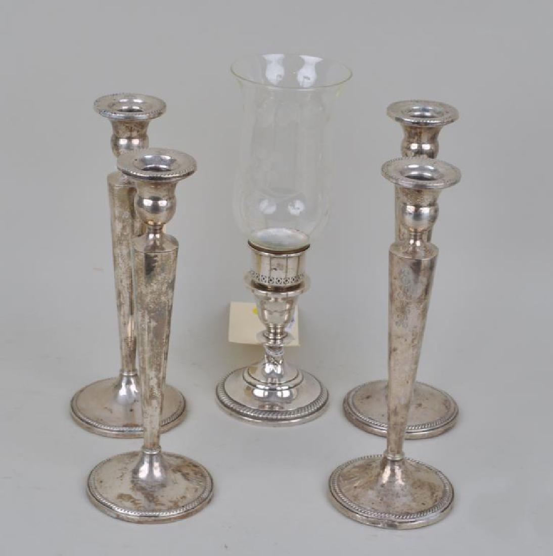 Set Four Sterling Candlesticks & Sconce