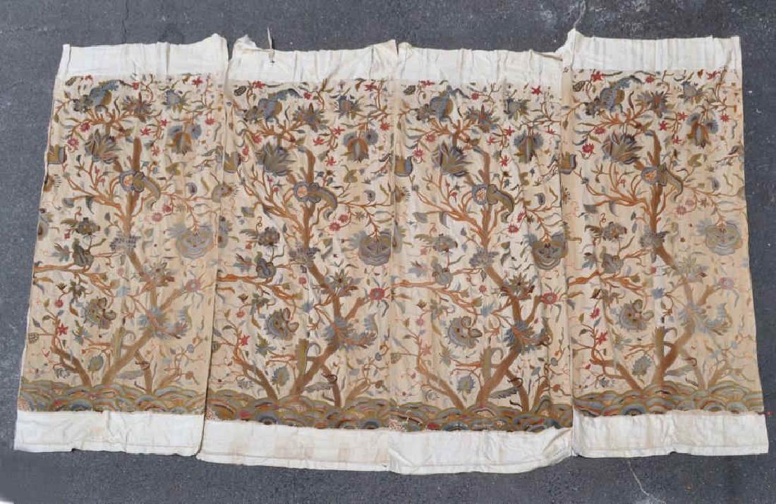 Set Four Vintage Crewelwork Bed Panels