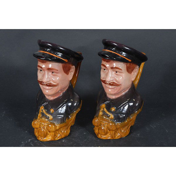 BRITISH HAND-PAINTED CERAMIC TOBY JUGS, LOT OF SIXMar 05, 2026Lot of 2 Antique Ceramic Pitchers6 days LeftA Lot of 2 Stoneware JugsMar 03, 2026Lot of 2 Japanese porcelain noddersMar 02, 2026Two Blue and White Transfer Milk PitchersMar 10, 2026Lot of 3 Bohemian glass pitcher and 2 cupsMar 02, 20262pc Royal Doulton Character Jugs, Robin Hood D6527 & D62051 day LeftClarice Cliff - Pair of Bizarre Pitchers in ”My Garden”3 days LeftAntique pottery Toby pitcher.Mar 05, 20262pc Royal Doulton Mid Character Jugs- Wild Bill D6736 & Annie Oakley D67321 day LeftPair of Continental Porcelain Two-Handled VasesMar 14, 2026Ed Klimek & Steven Dark - Face Jug and Face Mug, Southern Folk Pottery?Mar 08, 2026Rockingham Pitcher and Jar1 day Left3pc Royal Doulton Small Character Jugs, D6233, D6504 & D67711 day LeftRoyal Doulton Character Jugs Representing Various FiguresTwo Royal Doulton Character Jugs, Catherine Howard and Catherine of Aragon2 days Left